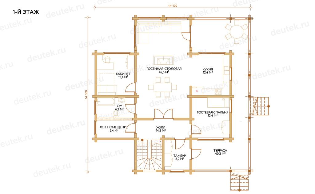 Габариты дома: 14.10 x 14.00 м