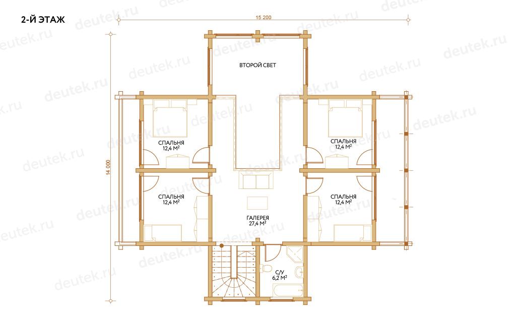 Проект дома 14х14 из бруса со вторым светом DTW0067